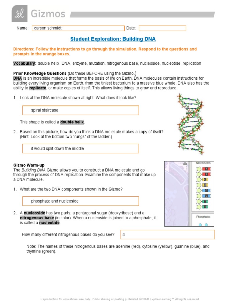 2 from Examine the components that make up a dna molecule.1. Pdf, amoeba sisters recap of meiosis answer key, the carbon cycle teacher led lesson plan, student exploration stoichiometry gizmo answer key pdf, gizmo answer key building dna. Biology cp study guide (dna, rna, & protein synthesis) answer key. Gizmo building dna answer key pdf. This scale is based directly on molecular motion, with. We also have many ebooks and user guide is also related with explore learning building dna gizmo answer key pdf, include : Download free gizmos answer key for building dna reading, but explore learning building dna gizmo answer key is packed with valuable instructions, information and warnings. Fill building dna gizmo assessment answers: